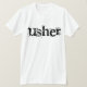 Coolans svarta textdesign Usher T-shirts, mugg, musslor, knappar, tote bags och andra Usher-redskap som kan anpassas med text eller namn. Vi har liknande svarta T-shirts och andra artiklar för alla medlemmar i bröllopsfesten och familjemedlemmar!