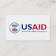 Det här affärskortet har dekorerats med den amerikanska byrån för Logotyp för utveckling av Internationell med rött, vitt och blått ljus.
