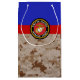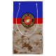 Använda de här marinkårens presentsäckar för marinkåren studenten från upploppsläger på antingen MCRD San Diego eller Paris Island. Perfekt som presentsäckar vid en avgående utplacering i party eller till och med för att hålla en veterangåva från USMC. Glöm inte en marin kår pension party eller till och med gåvor till Marine Mammor. Kasta en marin Mamma-skjorta där inne, eller en marin Mamma-julprydnad, och det skulle få varje marin Mor att gråta. Glöm inte heller Marine Corps Pappor eller morföräldrar. Tänka om ge ett tecken på uppskattning för en rekryterare till en marin kår i Förenade Stater vid jul. Konstruktionen innehåller en bakgrund av digitalkamouflage i öknen med den amerikanska marinkårens sigill.