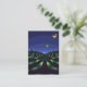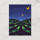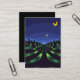 Detta fantastiska abstrakt konstnärhandelkort presenterar ett surrealistic landskap av himmel i vågar av blått ovanför grönt och svärtar landet som tillbaka ner till oändligheten, all i ett lysande ljust. Tre guld- duvor verkar för att flyga ut ur det oändligt annullerar.
