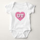 Den här baby romer har en lugn, coola rosa hjärta som innehåller fetstil, vit, övre fodral brev UT, officiell förkortning för tillståndet Utah, bikupans tillstånd.