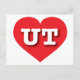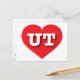Detta vykort har ett levande rött hjärta som innehåller de feta, vita, versala bokstäverna UT, den officiella förkortningen för Utah, biodlarstaten. Baksidan av vykortet är tomt och väntar på dina handskrivna känslor eller anpassad text.
