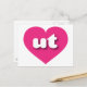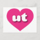 Det här vykortet har ett dynamiskt shock rosa-hjärta som innehåller det feta, vita, rundade nedre brev men fodral, en lekfull förkortning för Utah, bikupans tillstånd.