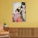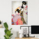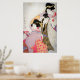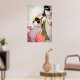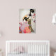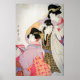 Njut av den vackra återgivningen av 1805-träblocket "Two Geishas with a Tipsy Client" av den japanske konstnären Kitagawa Utamaro. Ukiyo-e ("bilder i den flytande världen") är en genre av japanska träblock och målningar som framställs mellan 1700-1900-talet och som innehåller motiv för landskap, historieberättelser, teater och nöjeskvarter. Det är den främsta konstnärliga genren av träblocktryck i Japan. Den Flytande världsaffären på Zazzle återställer på ett smärtsamt sätt dessa historiska skatter till deras sanna färg och löser grundläggande frågor om åldrande. Pappra struktur och färg bibehålls, eftersom det avslöjar åldrasen skönhet hos dessa konstverk.