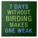 Denna roliga textdesign för birders läser "7 DAGAR UTAN BIRDING GÖR EN SVAG". Du går longer, utan att birding, svagare får du - den gör avkänning. Detta gör en rolig gåvaidé för någon birder! Du kan skräddarsy denna gåva. Flyttningen designen omkring, ändrar bakgrundsfärgen, eller stil, tillfogar text eller bilder -- gör det ditt eget!
