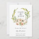 Elegant vattenfärgsutandning av botanisk blommigt i skogen, spara datumkortet. Elegantens typografi med fast dammiga persikobaksida färg.