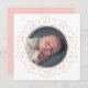 En snyggt elegant vintage söt rosa flicka rosa foto födelsebesked. En söt blommigts rosa andeandala. Ett sött tillkännagivande från snyggt nyfödd bebis med en känslig cirkel mandala. Nya föräldrar kommer att sina nyfödda foton med detta tillkännagivande av kreativet. Detta utkast har en modern utformning av födelseanmälan för nyfödda flicka med vattenfärgstema för blommigt och blommigtar för elegant, även med kärlek-olivträd och födelsestatistik, en enkel löv-grönt, minimalistisk, snyggt, bild-mandalakandur.