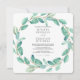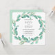 Enkelt elegant blommigt Eucalyptus garland designad i vattenfärg (vattenfärg) grönt grönt på vit bakgrund och klassisk grått-text med chicens kalligrafaccent. En modern och elegant tar sig an den botaniska trenden för vår eller sommar-bröllop. Kortomvänt i ett känsligt akva färg Om du vill ha hjälp eller anpassningsbar kontaktar du oss genom butiken eller skrivan på citronelladesign@gmail.com Square-inbjudan med rundade hörn lägger till inslag för elegans till din dag.