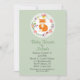 Grönt babyduschinbjudan, med en söt blommigts andedräkt på en vit lacy doily och en söt tecknad i andedräkten. En grönt med vit polka punkt mönster täcker baksidan. Anpassa all text fält för din babyduschhändelse.
