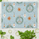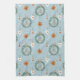 Våra utandningsljud och prydnadsföremål Ljusblå kökshandduk har skarpa illustrationer av prydnadsföremål för jul, grå andedräkt, stjärnor, färgstarka konfekter och snöflingor på en mjuk blå bakgrund, vilket gör att du får ett litet helgdag till ditt hem!