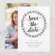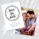 Vänner och familj i inbjudan för att spara datumet för bröllop med den här moderna fotodesignen.