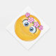 En gult som har en andedräkt i blommigten runt huvudet. Den här designen ser ut att vara effektiv på dessa Pappra servetter