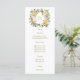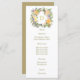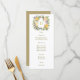 Dessa menykort i bröllop har en vacker krans i blommigten överst, med paret bröllop i guld i mitten. Färg som ingår i utandningen är guld, tangerinens orange, citronens gult och grönt, tillsammans med kryddor och röda. Under andedräkten står anpassningsbarna, även i guld. Bilden och texten placeras på en vit elegant. Kortets baksida är antika guld för att lossa den vita framsidan. Perfekt för bröllopsmottagningar under vilken säsong som helst, men särskilt för sen sommar eller höst. Se till att se motsvarande inbjudningar och andra bröllop-produkter i vår butik.