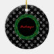 Julprydnad med vit snöflingor och svart bakgrund. En andedräkt av grönt med monograminitialt på framsidan. Baksidan har ditt namn. Gör ändringarna när du anpassar mallen. Om du vill göra fler ändringar klickar du på Anpassa ytterligare. Spara på den ensidiga tryckta förpackningen. Kontakta Sandy på admin@giftsyoutreasure.com om du behöver hjälp eller anpassningsbar.