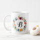 Kaffet i anpassningsbar mugg har ett monogram med ett skript som inledningsvis är utformat av en elegant boho stil-andedräkt med vackra blommor med fallande vattenfärg, inklusive ro, dahlias, peonblommor och grönenergi, i en fantastisk höstpalett med burgudtt, guldfärgad gult, persikofärgad orange, blommigt och rosans nyanser. Anpassa med första namn-starten.