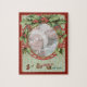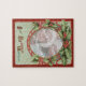 Den här designen är anpassad efter ett gammaldags helgdag av festlig vintage och har en kransformad fotolåda där du kan lägga till din egen bild med texten "Bästa jul-Önskemål". Lägg till fotot och anpassa med namn, data och/eller säsonhälsningar önskemål. Design färg omfattar grönt, rött och guld.