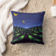 Denna fantastiska abstrakt dekorativ kudde har ett surrealistiskt landskap i himlar i vågar, där blått ovanför grönten och svart land går tillbaka till oändligt, allt i ett ljusartat ljus. Tre gyllene duvor verkar flyga ut ur den oändliga tomten. Bilden upprepas på baksidan.