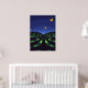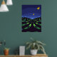 Denna fantastiska bra av abstrakt poster ett surrealistiskt landskap i himlar i vågar, där blått ovanför grönten och svart mark går tillbaka till oändligt, allt i ett ljusartat ljus. Tre gyllene duvor verkar flyga ut ur den oändliga tomten.