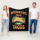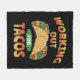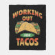 Färgfull, rolig illustration med "Arbeta fram för Tacos"-textdesign med Tacos-dekoration för alla som kärlek mexikanska livsmedel
