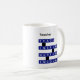 En modern kaffekopp med läraridentitet med en ren design med ord i ett rutnät i vitt på en marinblå bakgrund. Den vertikala svarta kopplingen ger struktur och balans och ger de horisontella orden en stark och sammansatt layout. Ordet "Lärare" högst upp kan redigeras. Ersätt det med Professor, Instruktör, ett namn eller ta bort det helt för en minimalistisk look. Designen framhäver värderingarna av undervisning: Undervisa, Inspirera, Nurture, Uppmuntra. En meningsfull kopp för lärare i alla karriärstadier och ett genomtänkt alternativ för examina, nya positioner eller professionell stolthet.