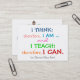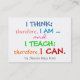 Jag tänka känslan är tydlig, ja ... :) De som tänka annars aldrig har lärt sig. Det finns också utrymme för anpassning på mina andra poster och lärarprodukter. Sharon Rhea Fords ursprungliga citat om lärarartiklar. Artiklar från de ursprungliga lärarna (med upphovsrätt) av Sharon Rhea Ford ... Copyright:All Höger Reserved Registed:Sat Feb 07 14:31:50 UTC 2009 Fingerprint:Show digital fingerprint e3860c4f5cfa933c3ebf98f88f81c327b937 700b9da37b2ee0a33851d36eddb Rubrik:Undervisning av offertbeskrivning:I tänka. Därför är jag, och jag undervisar. Därför kan jag. MCN:C9E78-CCFC0-4E856 Som lärare är vi professioneller. Ha ett affärskort redo att dela ut till föräldrar. Ge ditt mobila skolnummer och skole-post adress. Lägg till grundläggande behov eller instruktioner om du vill. Du kan använda utrymmet på baksidan på motsvarande sätt om du vill lägga till en allmän anteckning, ta bort en del av texten, ta bort allt ... osv.! I mitt fall använde jag det dyraste pappra lagrar som knappast kan förstöras. På det här använde jag Standard, så spela med lagrar för att behaga stil! Tack och njut! Bästa önskemål för skolåret!
