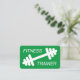 Modern grönt Business Card-mall för träningskurs i träningskassan med logotyp för dockning. Enkel modern företagsdesign för manliga eller kvinnliga personutbildare, motiveringsguru, sporttränare, viktlyftare, träningsrådgivare, tränare för korspassning, gymnastikägare, nutritionister, instruktör, hälsovårdspersonal, idrottslag, klubb osv. Svartvit företagskort för professioneller. Bakgrunden till färg kan ändras. Rundade hörn är valfria.