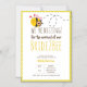 Toppen söt roligt och modern Bee temed Inbjudningskort för möhippan ...I Förenade kungariket säger vi att vi är "förbryllade" när vi är upphetsade, så i inbjudan står det "vi är förbryllade över vår Bride2bees ankomst"! Utmärkt gult och vit färg-polka punkt mönster, med söt lustigt tecknad med rött hjärta från kärlek och ett ring från guld bröllop och modern typografi. För matchande objekt som partyware, presentprogram, tack, märkre, släpp designer LeahG en rad och hon kommer att vara lycklig som hjälp vid din begäran om anpassningsbar.