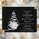 Den här elegant- och chic helgdag-presentutbytesinbjudan innehåller ett silver-band Julgran med en present. Texten kombinerar handskript och modernt sans serif typsnitt för ett klassligt och sofistikerat utseende. Den fallande snö, glitter och gnista ge är en festlig och magisk beröring.