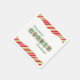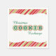 Den här engångsdockan för julcookie Exchange har en vit klammerform i mitten och anpassadet. "Kakan" i ord på napkin accentueras med skalopade kakor med ljusröd och grönt frost och sprinkler. Bakgrunden är ett rött och guld diagonalt rand mönster.