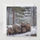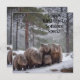 Avbildad i det snöiga höglandet i Tasmanien är en vombatfamilj ute i kylan.