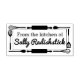 Roligtens självtryckande "från köket av" gummi frimärke för den avslutande beröringen på ditt hemmade paket av vildsint mat, godis och mattor. En gräns av köks-, matlagnings- eller bagageredskap - spatel, rullstift och visk - och anpassningsbarnas text inuti.