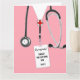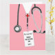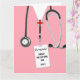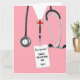 Personlig karta för examen från sjuksköterskeutbildning med rosa sjukhusskjortor. Redigera texten för att lägga till namnet på din favorit sjuksköterska som tagit examen.