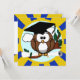 Utexaminerad uggla med blå och gulda skol färger inbjudningar