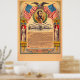 En reproduktion av ekromolitografen från emecipation-proklamation som framställts 1888. Denna vackra poster eller tryckning illustrerar president Abraham Lincoln, med två amerikanska flaggor och örnborst, och som har flankerats av det påstådda figurerna för rättvisa och frihet. Fullt till proklamationen om utfällning återges nedan. Välj storlek av porträtt eller utskrift och typ av papper eller arbetsyta och lägg till ett ram om du vill.