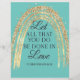 Jag Corinthians citerar "Låt allt du gör vara med kärlek" med glittery Boho stil-regnbåge på turkobakgrunden.