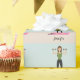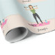 Den pappra inslagningen är en illustration av en brunettflicka som håller på med dumbom i händer. Flickan står på en rosa matta som har två dockor på den och en blå vattenflaska. Under bilden finns det ett anpassningsbara textområde för ett namn.