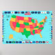 Utförlig USA Karta med Statsflaggor Poster