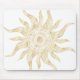 Magic guld sol mandala och sol vågigt strålar av mandala sommardesign, vackra solskenmandala fyllda med blommor av gult och bruna faux guld glitter, dammar, löv, punkter, cirklar, olika former, en sjöjungfru, geometrisk strålar och en centrerad mandalablomma med vit bakgrund. Denna unika mystiska sol mandala, snyggt henna mandala original art, representerar universum, liv och positiv energi.