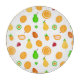 En roligt och lekfull mönster-design med exotiska frukter som passionsfrukt och mer i orange färg (denna design skapades med AI Dalle-E2-plattformen). Köp nu!
