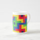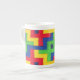 Ett färglöst "lappverk" utformar benkaffet mugg i china, i primärt rött, blått, grönt och gult, från ett foto av ett lapptäcke, som har tillverkats av Judy Adamson. En Tekanna, Pitcher och Annan Mugg med den här designen finns också i min butik.