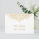 Elegant guld ornate snöre mandala-design på vit bakgrund, anpassadets presentkort för vykort.