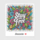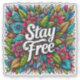 En spännande visning av färgstarka blommor och löv fyller duken, det krångliga mönster som präglas av en anda av motivation och glädje. Den djärva frasen "Håll dig fri" står i fokus och uppmuntrar tittarna att anamma kreativitet och individualitet i sina liv.