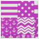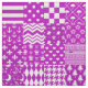 Lila and White Mixed Mönster Patchwork Design of 16 Olika designillustration av Fleur-de-lis, krona, hjärtan, Polka dots, grekiska nyckel, Måne-stjärnor, Houndstooth, Träd, Harlequin, Rand, check, paraply, ankare, Chevron, blob och blommor blommigt Design.