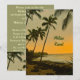 Repetera middagsinbjudningar som är romantiska och strandartade samtidigt som ett solnedgångsfoto tas vid en kusten i handflatan träd.