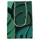 Abstrakt illustration av gigantiska tropiska monstera löv i grönt och turkos i färg och guld silhuetter på mörk grönt bakgrund för alla som tycker om naturen.