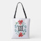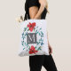 Utformning av rödblommor med monogram av söt tygkasse