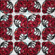 Vinerna från ro i rött och svart med vit bakgrund i Art nouveau stil.