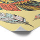 Mönster av olika fjädrar av olika storlek som dekorerats i mönster i stammen. Mönster i var och en av fyra kvadrater - orange, turkos, tan och lila