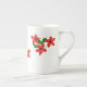 En snyggt vit ben china mugg med kluster av ljusröda blommor från en handmålad papper kollage av Judy Adamson. Andra produkter, gratulationskort och presenter, som t.ex. annat mugg, en saft och en teburk med denna design, finns i min butik.