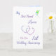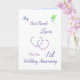 Ett kort för första Bröllop-årsdagen av en liten personlig för hälsning.